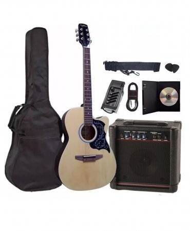 PACK DE GUITARRA ELECTROACÚSTICA MARCA STRING CON AMPLIFICADOR